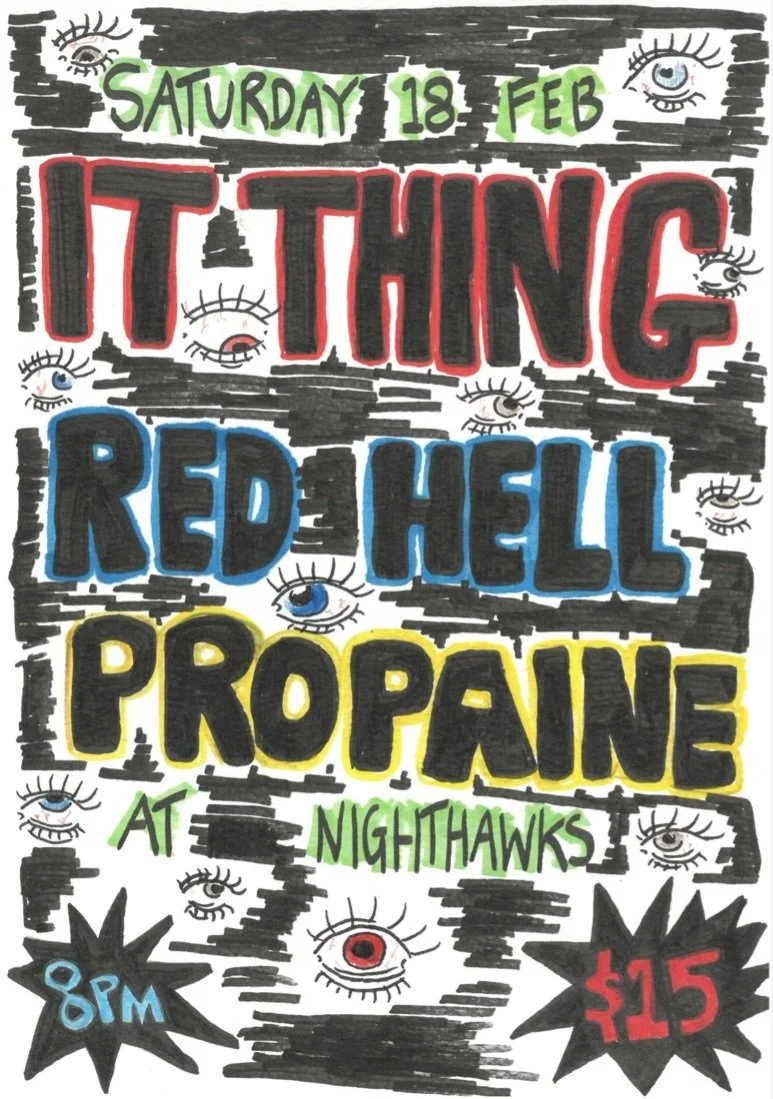 **MEN’S HEALTH CLUB TO REPLACE RED HELL** It Thing return to naarm (hopefully for good) this february for an evening at Nighthawks with Red Hell & Propaine . $15 on the door only so don’t fumble!