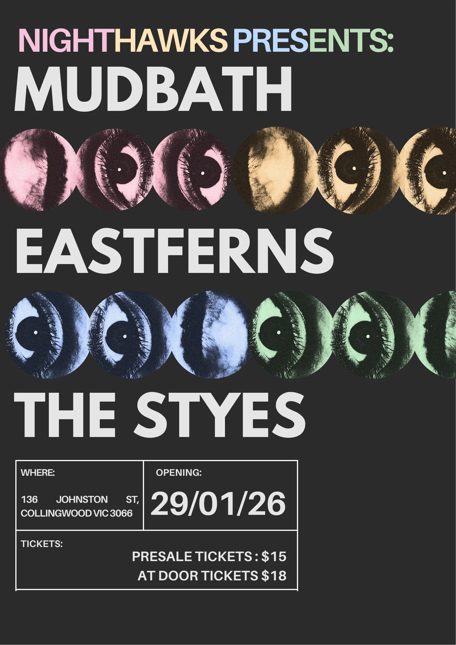Join Mudbath, Eastferns and The Styes for a fantastic night full of great music and pure live energy !