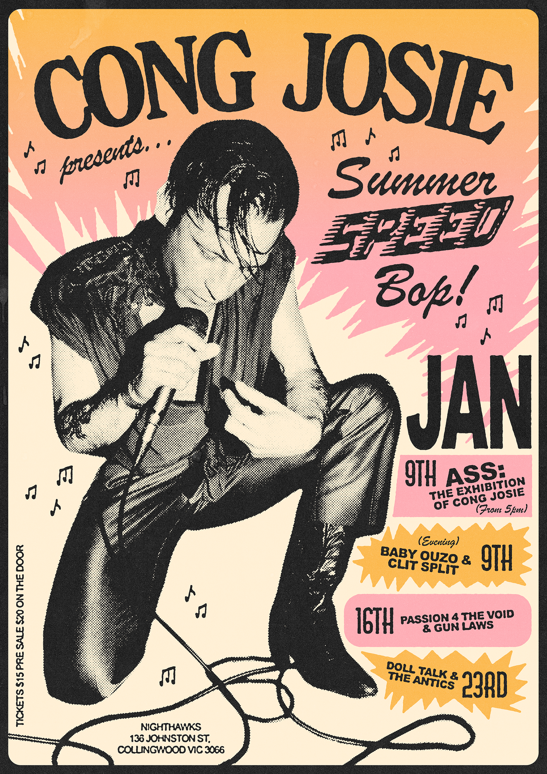 One night only exhibition called ASS. It will feature photography, writing and other art forms that explore the spectacle and deep meanings of Cong's behind.